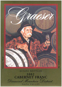 Our Cabernet Franc is 15% Cabernet Sauvignon. Our 2002 Cabernet Franc may be one of our best vintages since the magnificent 1992 Cabernet Franc, which has just reached its peak this year. Something about this grape just loves our steep little corner of Diamond Mountain. The 2002 displays rich raspberry color, a rich perfume and blackberry patch spice. The flavors follow through with ripe black raspberry, plum and crushed pepper with just the right amount of new oak to show off the spicy character in the finish. The refined tannin and brilliant acidity throughout make this the perfect choice at mealtime. This wine will benefit from 5-15 years of cellaring. Gold Medal Winner!!
